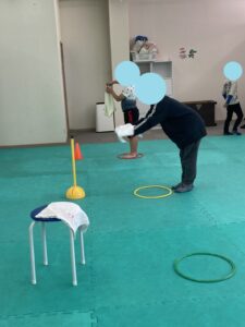 この丸椅子が滑るのでスー―ッと滑っていっちゃうんです💦