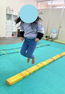 今日のグルグルサーキットは、ラダー、平均台を飛び越えるジグザグジャンプ、