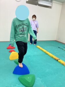 デコボコ道、ペンギン歩き、そして最後にグラグラディスク重ねの5種目です🐧