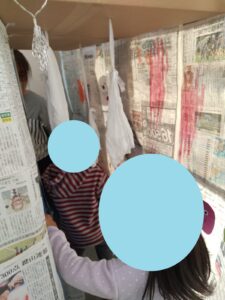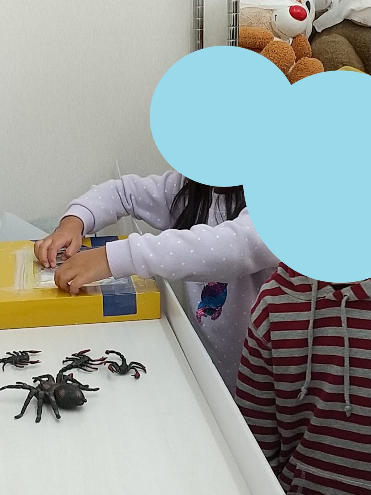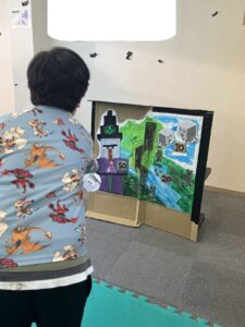 怖いおばけたちにドキドキしながら近づき、触れてみるお友だち👀
