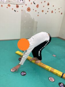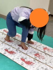 運動あそびのサーキットは血の手形足形をたどって進んだり