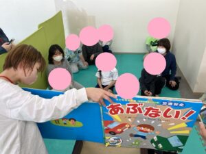 今日の静かな活動では『あぶない!~子どもをまもる 交通安全~』という大型絵本をみんなでみました✨暖かくなってきて歩行者も運転手も気持ちがフワフワしがちですね👀交通事故を防ぐにはどうしたらよいか考えてみました☆