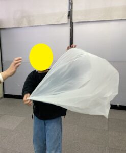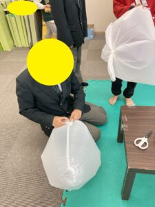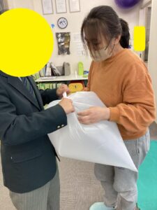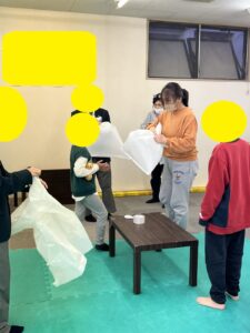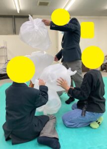 今日のSSTでは、ごみ袋を使って運動あそびをしました。