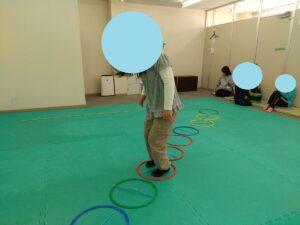 ループに一本の紐が貼られていて、ジャンプで両足をはめていきます☆