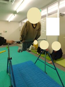 平均台から落ちないようにフープの中で回転するのはなかなか難しいですね👀