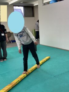 ②平均台後ろ向き歩き