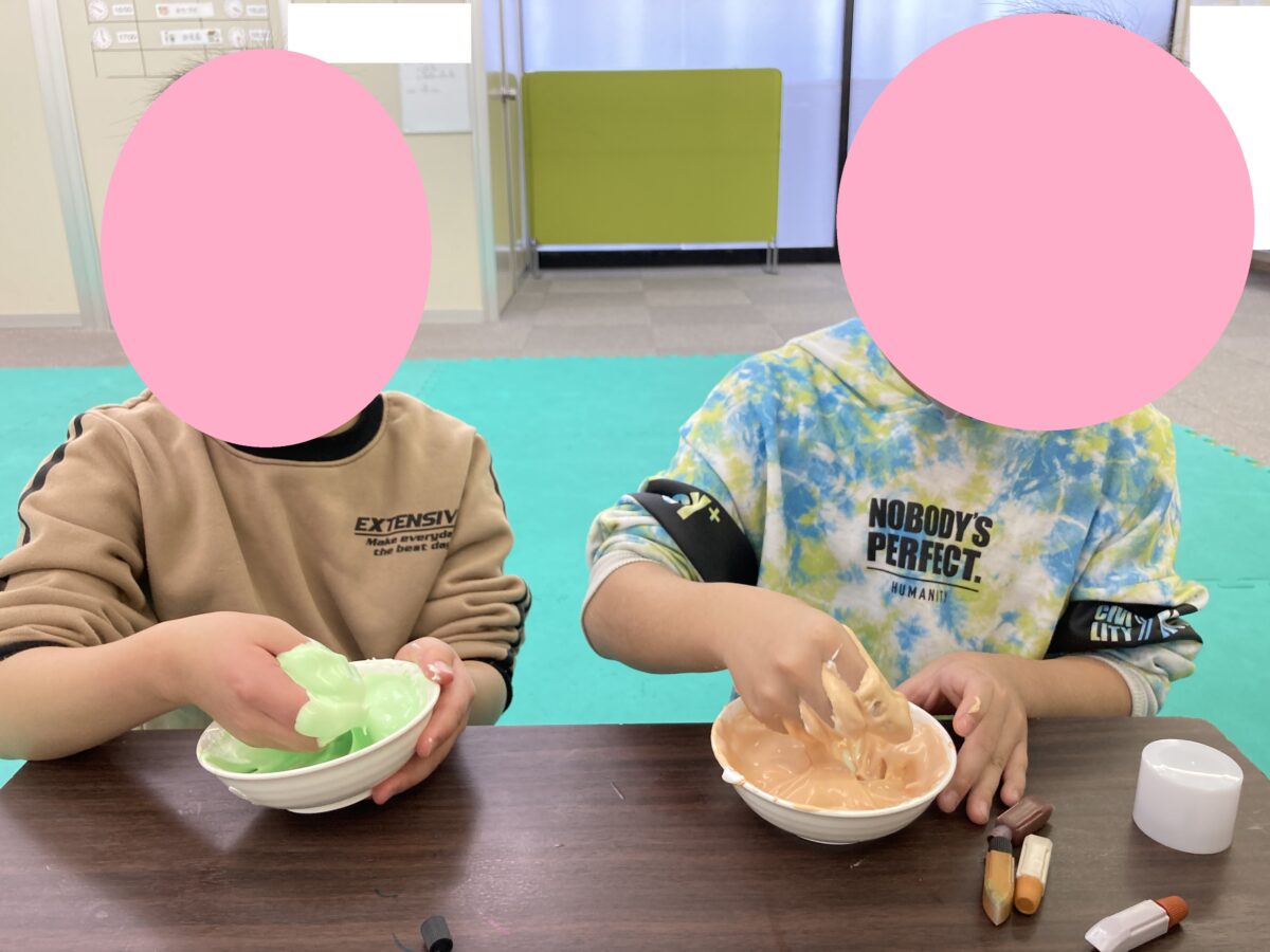 好きな色の絵具を混ぜて、自分だけのオリジナルスライムです😝