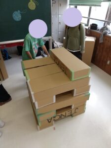 巨大ジェンガではお友だちと協力して、どんどん高く積み上げていました🎶