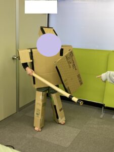 段ボールでマイクラの装備3点と武器を作りあげたお友だち😄