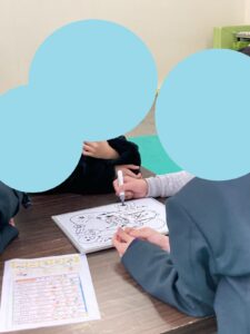 順番に描き足して…面白い絵の完成!😄みんなで大笑いしていました🎵