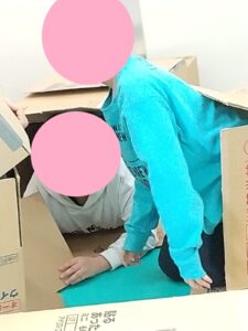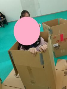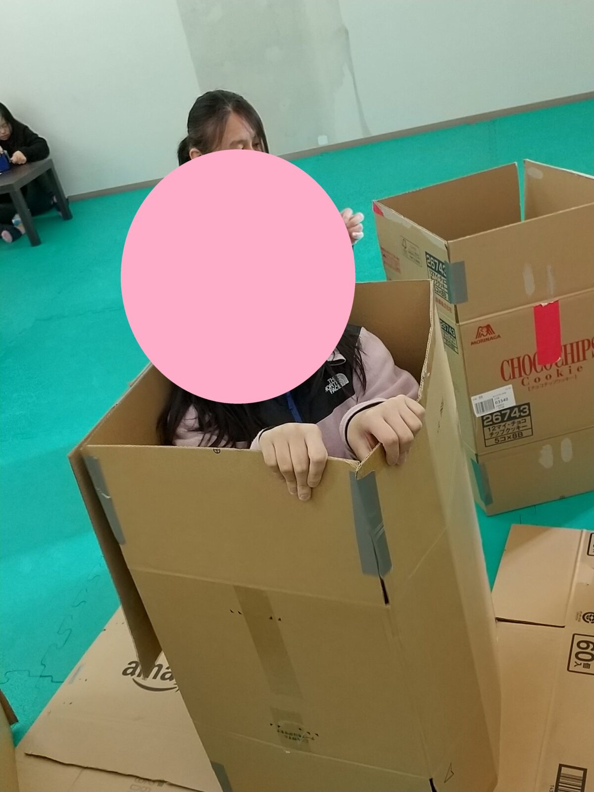 教室のお友だちも つぎつぎに段ボールの中に入っていきました。