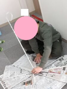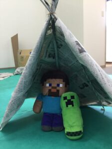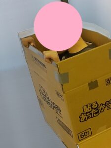 今日は、大きめの段ボールと新聞紙をいただきましたので