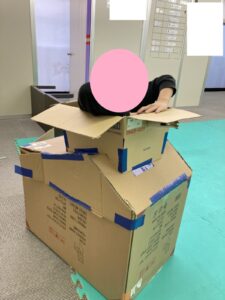 マット、跳び箱を使っていろんな形に組み、なんだかワクワクするような秘密基地を作りあげていました🎶お友だちのアイデアを聞いたり、自分のアイデアを出したりと、とても楽しそうでした✨