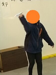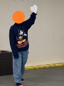 どこまで飛ばせるか、教室の中で飛距離を競争しました🎵