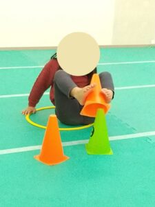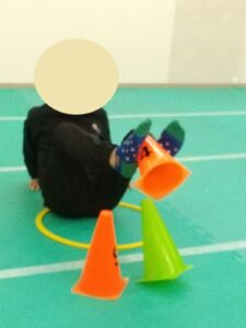 手を使わずに足だけを使ってコーンを重ねます👀
